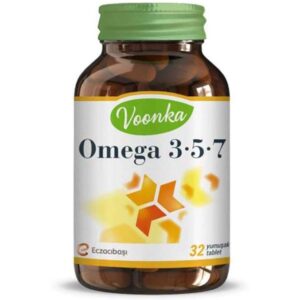 Voonka Omega 3-5-7, balık, nar çekirdeği ve kır iğdesi yağının karışımından oluşan bir gıda takviyesidir.